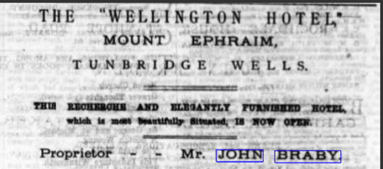 In 1875 he is advertising as the proprietor of the Wellington Hotel, Mount Ephraim, Tunbridge Wells.