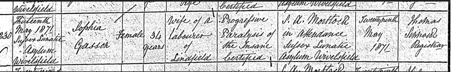 Sophia Gasson – who was this young lady buried in Sussex Asylum, Wivelsfield. (St Francis) graveyard in 1871?